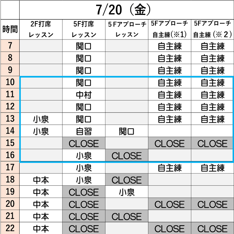 (※1)アプローチ・パターコーナー25分→バンカー25分